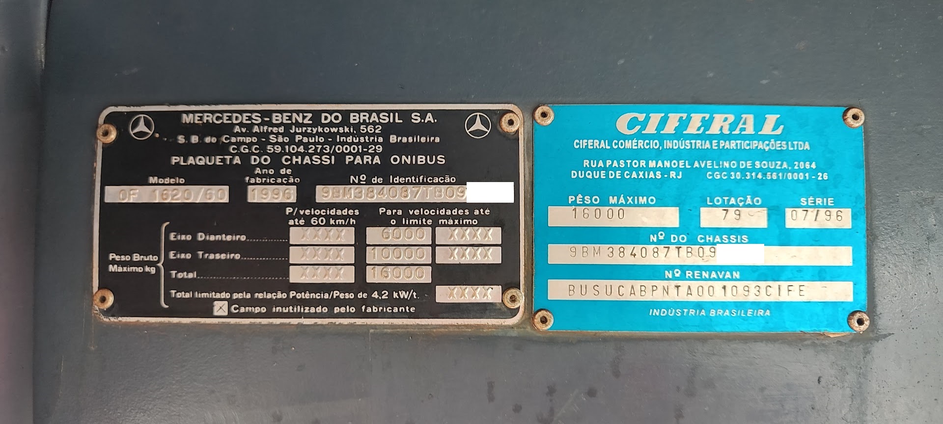 ÔNIBUS MERCEDES BENZ OF 1620 / ANO 1996 / CARROCERIA CIFERAL / DUAS PORTAS / MOTOR DIANTEIRO / 37 PASSAGEIROS / 2 BANHEIROS / TANQUE DE ÁGUA / 2 TOLDOS LATERAIS / ÚNICO DONO / 60.000 KM ORIGINAIS / POSSUI MANUAL DO PROPRIETÁRIO / UMA VERDADEIRA RARIDADE / 6 PNEUS NOVOS 10.00 X 20 / MECÂNICA REVISADA / PRONTO PARA TRABALHAR